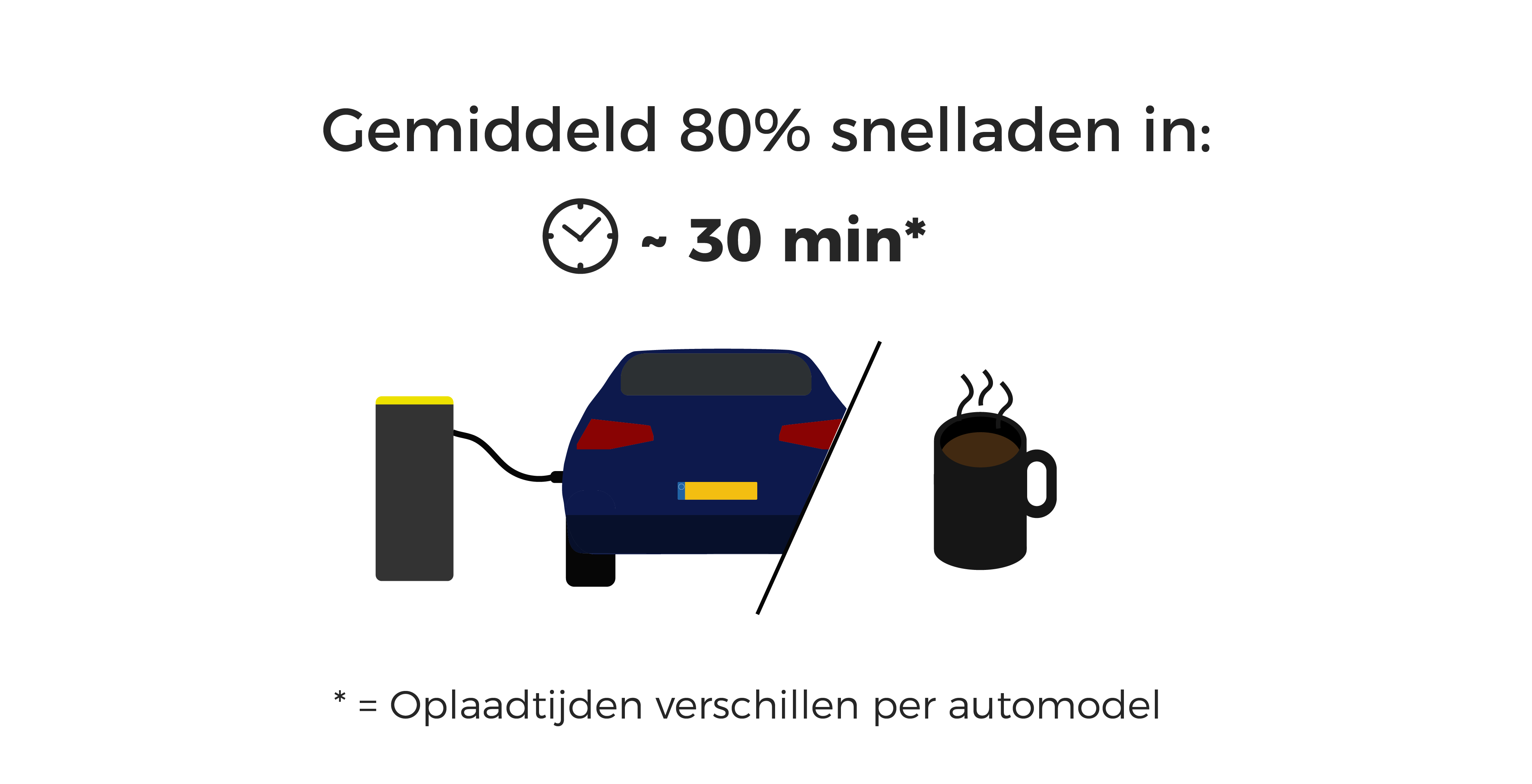 Snelladen is ruim ~10x zo snel als thuis laden! We praten hier over minuten, niet meer in uren > ideaal tijdens een lange trip met een snelle stop langs de snelweg of in de stad tijdens wat boodschappen van een half uurtje.